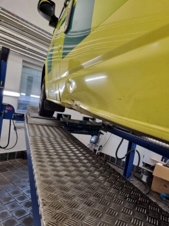vozidlo poškozené po DN (promáčklý práh a bok u řidiče) + závada motoru, vyhodnoceno pojišťovnou jako totální škoda,