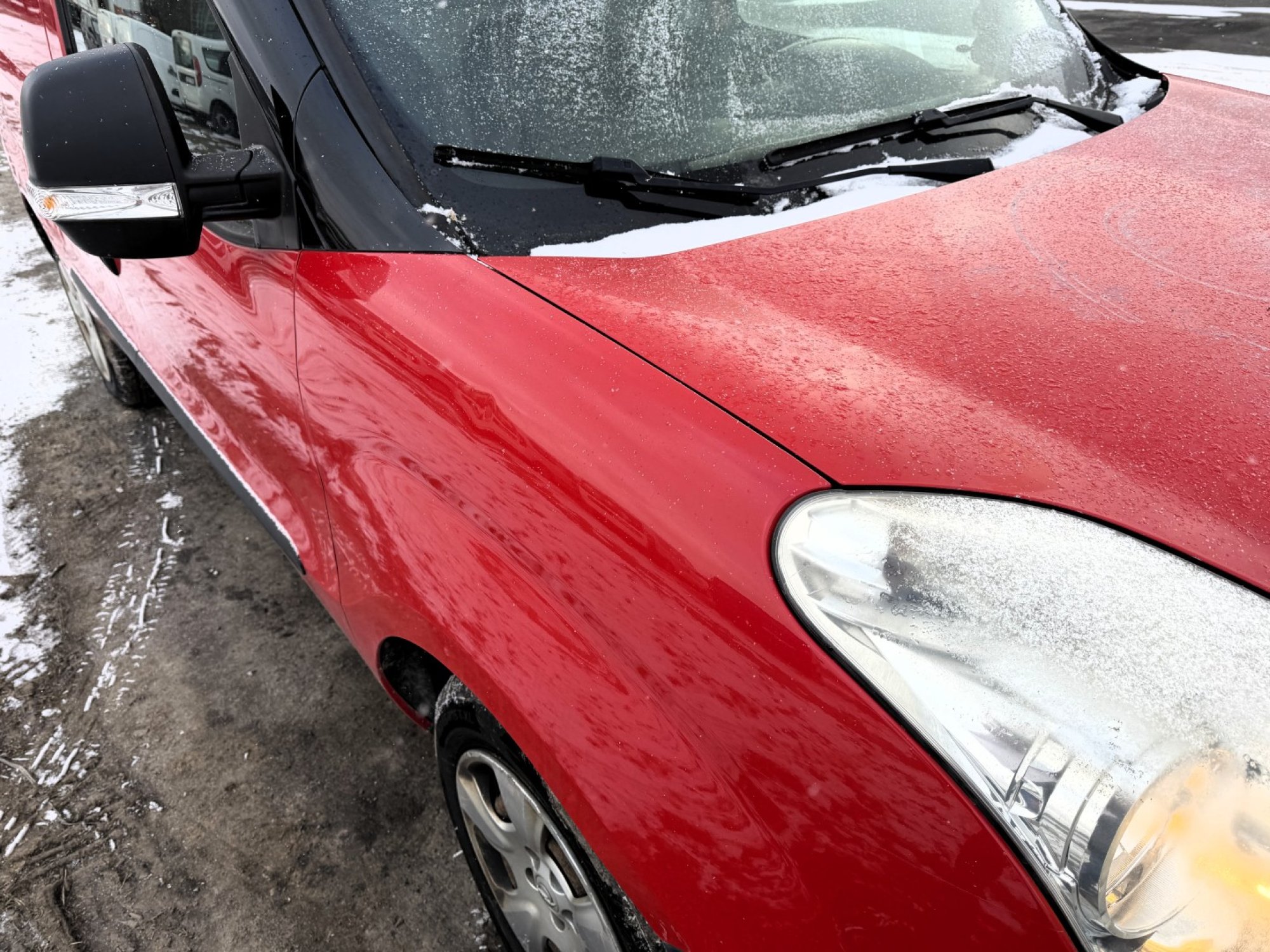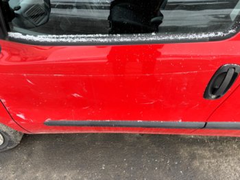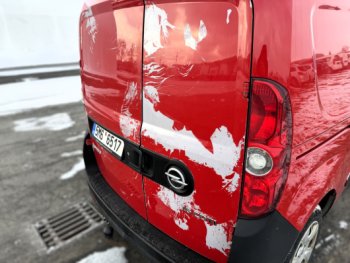 Motor běží bez problémů, po motorické stránce je vozidlo v pořádku. Interiér je však výrazně poškozený a opotřebený. Karoserie nese známky intenzivního provozu – promáčkliny, oděrky a místy zbytky lepidla po odstranění polepů.